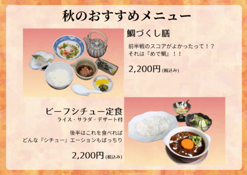 コンペルーム- 後半のスタート時間の30分前までにご注文をお願いします。