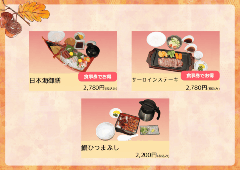 - ドリンク券、お食事券等をご利用の際は、スタッフまでお声掛けください。