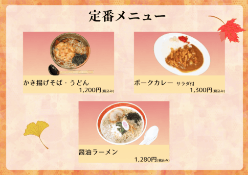 コンペルーム- 後半のスタート時間の30分前までにご注文をお願いします。